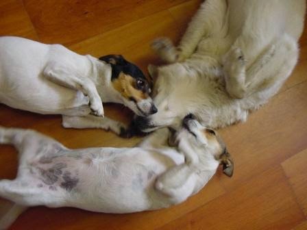 hebzucht of overdreven interesse kan de naderende hond poolshoogte nemen, kan de ballenjongen de hond uit de weg gaan, of kunnen beide honden onbelemmerd aan elkaar