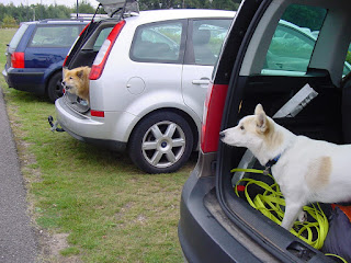 At the end she gave away that she isn't an Icelandic dog after all. Pop sitting on the higher armchair at the cafe terrace: typical Norrbottenspets behavior.
