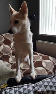 tapijtje kieperden we gelijk in de container en de hond werd 'in de bleek' gezet,